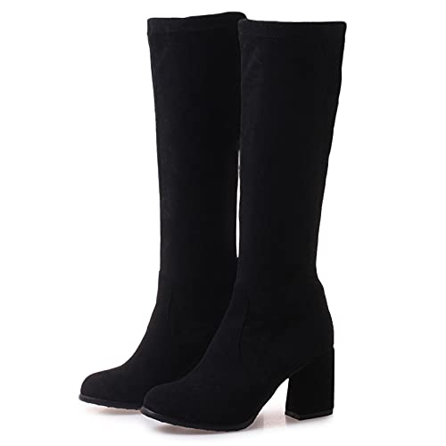 MJIASIAWA Donna Senza Chiusura Inverno Tacco A Blocco Moda Knee Stivali Stretch Tacco Alto Warm Festa Stivali Equitazione Nero Numero 48 EU/50 Asiatico