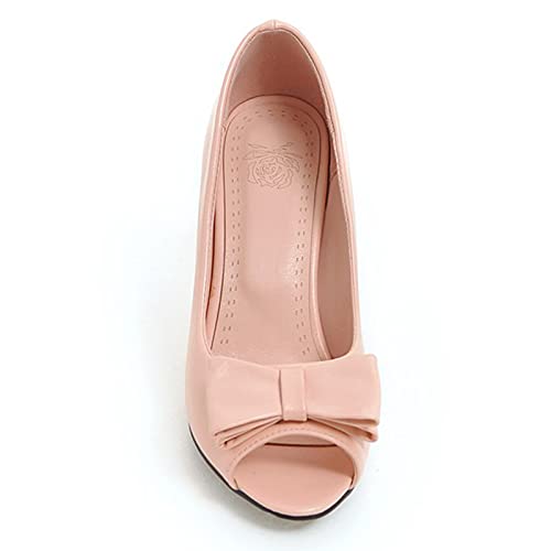 MJIASIAWA Donna Sposa Vestito Peep Toe Senza Chiusura Bows Tacco A Spillo Pump Ufficio Formal Tacco Alto Eleganti Festa Scarpe Rosa Numero 34 EU