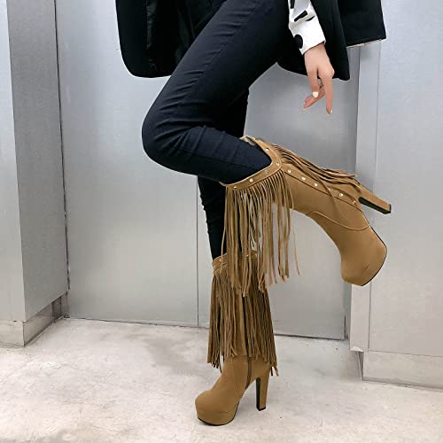 MJIASIAWA Donna Tacco Alto Inverno Classico Alla Schiavae Frangia Plateau Boots Zip A Collo Alto Casuale Tacco A Blocco Romano Boots Beige Numero 34 EU