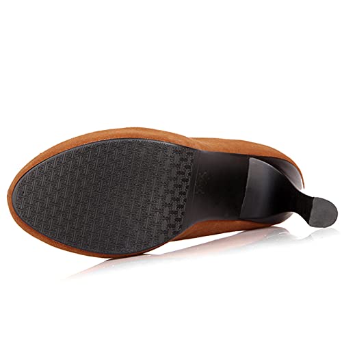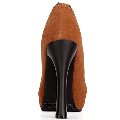 MJIASIAWA Plateau Tacco Alto Donna Closed Toe Senza Chiusura Tacco A Spillo Pump Ruffle Eleganti Serata Sposa Vestito Fomal Scarpe Marrone Numero 31 EU