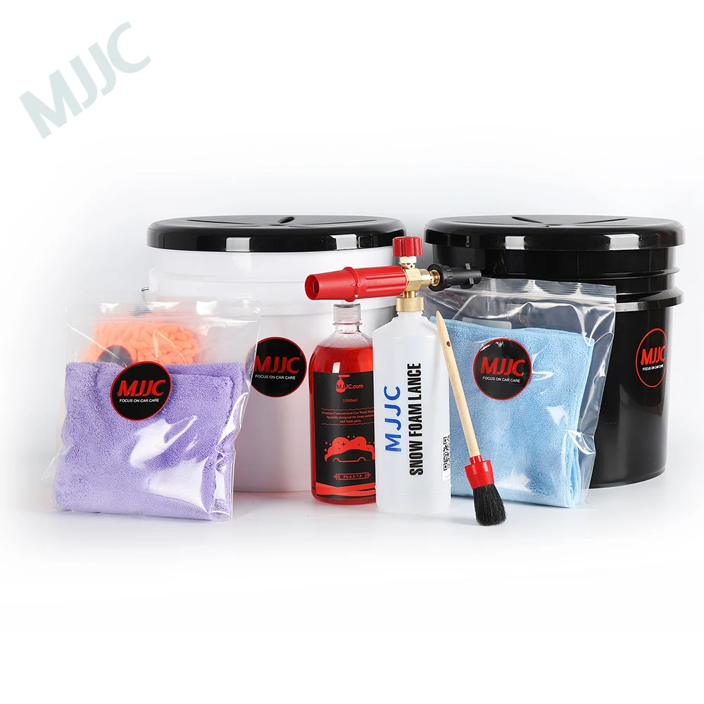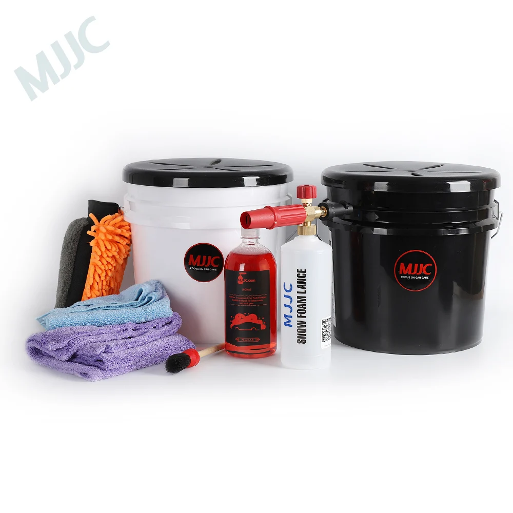 MJJC Detailing Dual Bucket Washing System with Seat Lid, Wash Mitt, Microfiber Towels, Detailing Brush, Foam Cannon and Car Wash