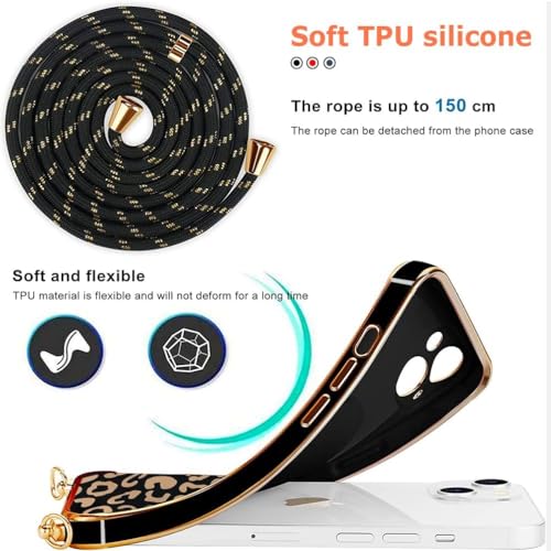 Mkej Custodia con Collana per Honor Magic 5 lite, Cover Donna Modello leopardo con Cordino, Case con Laccio Tracolla Elettrolitico TPU Cover con Collana per Honor Magic 5 lite - oro nero