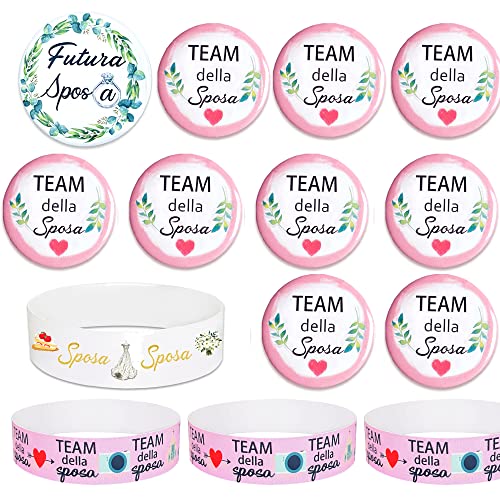 MKISHINE 22pz Addio al Nubilato Sposa Gadget Addio al Nubilato Sposa, 11 Spille Sposa+ 5 Braccialetti Team Sposa/Accessorio Decorativo per Sposa Festa Addio al Nubilato Matrimonio Nozze