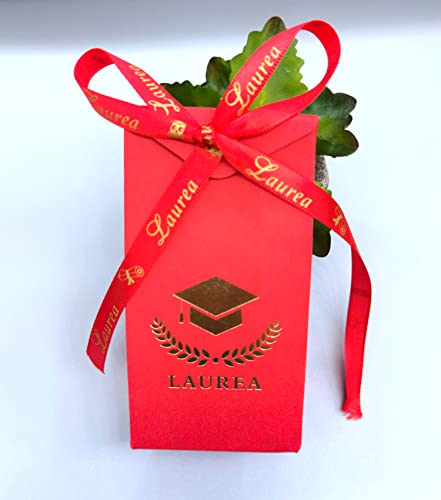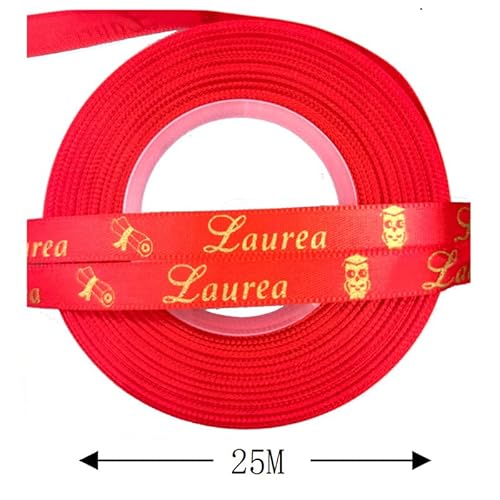 Il nastro è dotato di scritta dorata “Laurea”, ideale per decorare le bomboniere, regalo, scatole, cartoline, biglietti d'auguri.