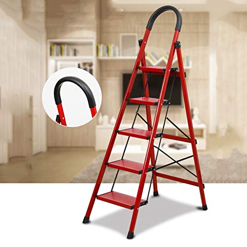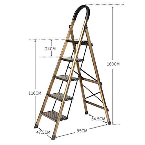 MKJLSD Scale, Scala Multiuso per Uso Domestico, Scala per Ingegneria Antiscivolo Scala Pieghevole per Magazzino in Metallo Addensata/Brown/54.5 * 95 * 160Cm