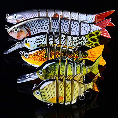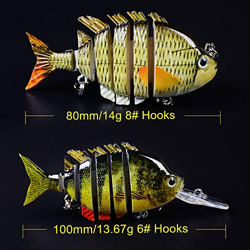 ESCA DA PESCA MULTI JOINTED: L'esca è composta da 6/7/8 Multi Jointed. L'uso del festival multi-pesce può far nuotare i pesci in modo più fluido nell'acqua. Come esche affondanti multi snodate, mostra movimenti sorprendenti nell'acqua e forza di trazione fino a 20 libbre.