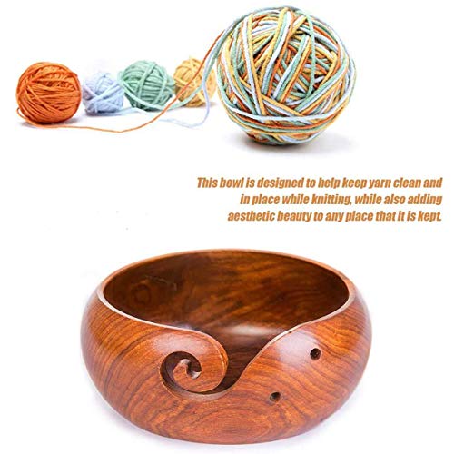 MKNZOME 6,3 pollici Ciotola di filato portatile in legno realizzata a mano Ciotole per maglieria in lana Porta uncinetto con fori e trapani intagliati Portafilo e filo Accessori per uncinetto a maglia