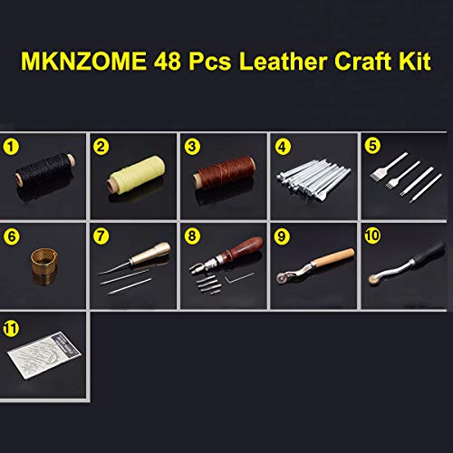 MKNZOME Strumenti per Cucire in Pelle, 48 Pezzi Strumenti per Cucire a Mano Artigianali in Pelle Fai-da-Te Accessori Forniture per Cucire Professionali Kit di Strumenti