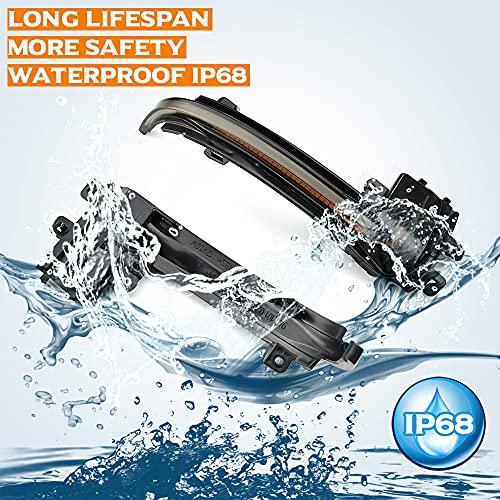 Design avanzato: cambiare le luci del segnale di rotazione da un semplice sfarfallio a uno sfarfallio sequenziale dinamico è molto più luminoso e piacevole. Non solo migliora l'aspetto della tua auto, ma massimizza anche l'illuminazione del lato conducente e del passeggero. Lunga durata, impermeabile, basso consumo energetico e elevata purezza della luce.