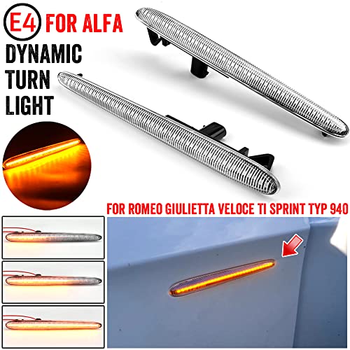MKptopia 2 pezzi LED Indicatore di direzione dinamico Indicatore di direzione laterale Indicatore sequenziale Compatibile con Al-fa Ro-meo Giu-lietta Ti S-print Ve-occe Typ 940-Cristallo bianco
