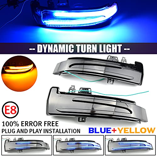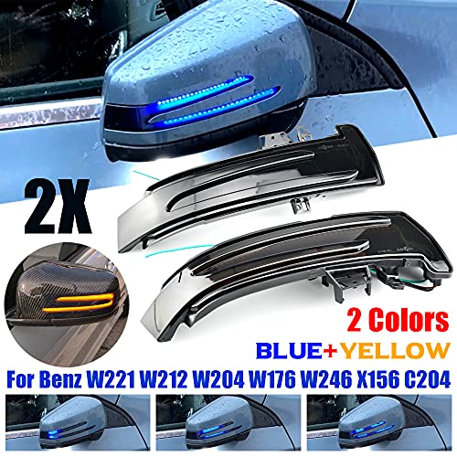 MKptopia 2 pezzi Indicatore di direzione per specchietto retrovisore, a LED, Compatibile con Be-nz C/E/S/Cla/Gla/Cls Classe W176 W204 W246 C216 C117 C218, colore: blu e giallo