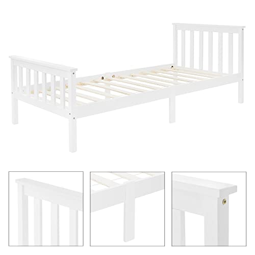 ML-Design Letto in Legno di Pino Massiccio 90 x 200 cm Colore Bianco con Giroletto Telaio Rete a Doghe Testiera e Pediera Lettino Singolo per Bambini e Adulti Struttura Solida Costruzione Robusta