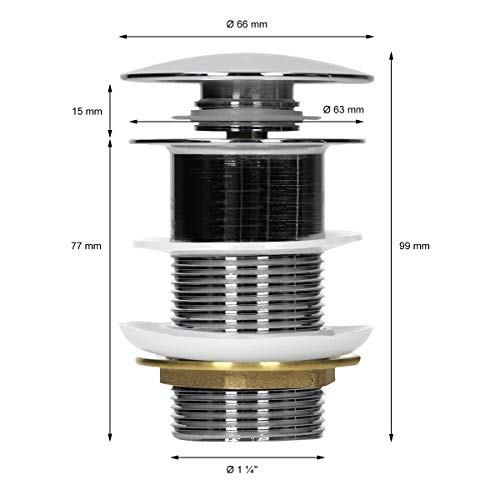 DIMENSIONI DI MONTAGGIO - Grazie alla dimensione di installazione standardizzata di 1 ¼ “, la valvola pop-up in ottone cromato si adatta a tutti i lavabi e piani lavabo standard.