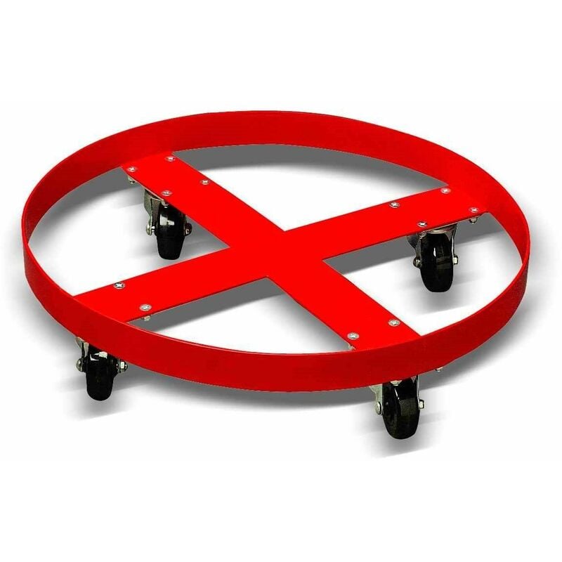 RULLO IN ACCIAIO PER FUSTI DA 200 LITRI, CON 4 RUOTE Accessorio ideale per qualsiasi officina auto. Grazie alle sue 4 ruote piroettanti, vi permetterà di spostare facilmente fusti in acciaio da 200 litri e fusti in plastica da 220 litri. Caratteristiche tecniche: Materiale: acciaio Materiale della ruota: Nylon Diametro: 60 cm Altezza totale: 14,5 cm Diametro della ruota: 7,5 cm Capacità di carico massima: 350Kg Peso: 8Kg Colore: Rosso Dimensioni imballaggio: 62,5x62,5x15 cm ( L x P x A )