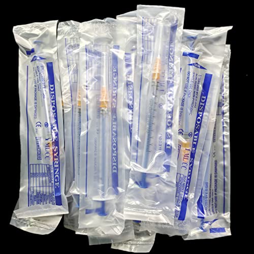 Confezione: 100 siringhe in plastica luer lock da 1 ml / cc con 25Ga e cappuccio, sufficienti per l'uso o la sostituzione.