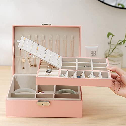 MLEIB, Scatole Portagioie Donna, con Serratura da 2 Strati Organizzatore di Gioielli in Pelle PU, con Divisorio Rimovibile per Collana Orecchini Bracciali Anelli Orologi, Regalo (Pink)