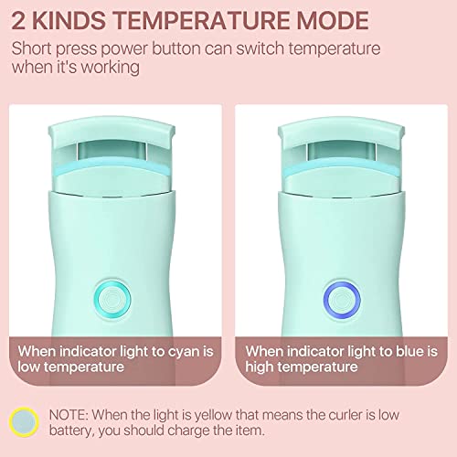 【2 modalità di temperatura】 Il Piegaciglia Riscaldato,ciano è la temperatura più bassa, per ciglia morbide e fini. Il blu è una temperatura più alta, adatta per ciglia dure e folte. Controllo della temperatura sicuro 45°C (113°F) -55°C (131°F) controllo della temperatura sicuro, non brucerà né danneggerà le ciglia e la pelle, anche i principianti del trucco possono usarlo facilmente.