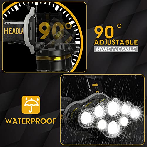 ❥【IMPERMEABILE E UTILIZZO DIVERSO The - La torcia del faro è impermeabile secondo IPX4. La scatola della batteria di alta qualità è più sigillata. La migliore torcia elettrica domestica per passeggiate ed escursioni notturne. Fari per caccia, campeggio e pesca. Torcia a LED a mani libere per lavorare sull'auto. Inoltre con illuminazione di sicurezza in modo da poter essere visto da dietro di notte mentre si cammina.