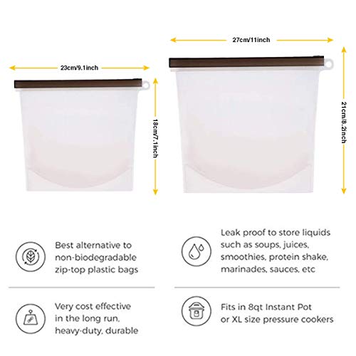 Servire la nostra migliore qualità: i nostri sacchetti in silicone premium garantiscono un'esperienza utente superiore. A prova di perdite, resistente al calore e al freddo. Ideale per conservare liquidi e utilizzare in microonde, lavastoviglie, frigorifero e congelare. Utilizzare per cibi caldi o freddi, liquidi, avanzi, pranzi scolastici, panini, snack e molto altro ancora