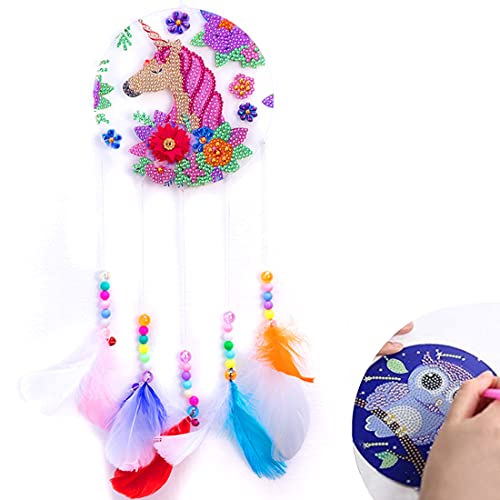 MLLTech 5D Pittura Diamante Dream Catcher Set, DIY Vento Campane Natale Unicorno Animale Pittura Diamante Kit Appendere Decorazioni - Diamante Painting Kit per Bambini Diamond Painting Kit Completo
