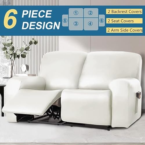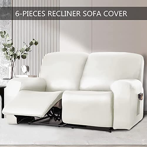 MLMHLMR Copridivano reclinabile in 6 pezzi Set copridivano reclinabile in pelle PU Divano elasticizzato diviso Fodera copridivano inclinato 2 posti componibile (Color: Ivory)