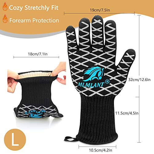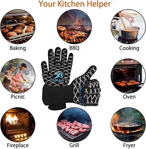 【Resistente al calore fino a 800°C】 I guanti MLMLANT bbq sono certificati EN 407 e resistono a temperature fino a 932°F (500°C). Guanti per griglia professionali per grigliare, cucinare, fumare, cuocere, tagliare o maneggiare oggetti caldi sia all'interno che all'esterno.