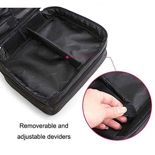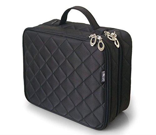 Mlmsy Astuccio da donna per il trucco con specchio, kit di bellezza da viaggio per pennelli e cosmetici, contenitore professionale e multi-funzionale a 2 strati, colore nero