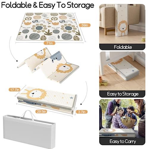 Mloong 150x180cm tappeto gattonamento,tappetone neonato pieghevole,impermeabile tappeti bambini gioco con borsa di trasporto,antiscivolo con rinforzo sui bordi tappeto pieghevole bambini,tappetino