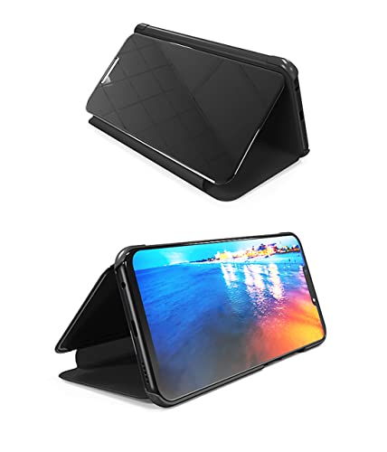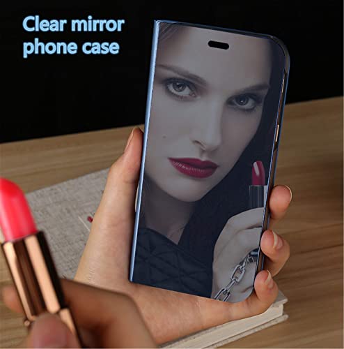 MLOTECH Cover per Huawei Mate 20 Lite Custodia + Vetro temperato Flip Traslucido Clear View Specchio Standing Cover Anti Shock Placcatura Cover Cielo Blu