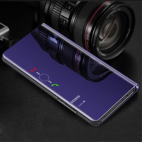 MLOTECH Cover per Xiaomi Mi 8 Custodia + Vetro temperato Flip Traslucido Clear View Specchio Standing Cover Anti Shock Placcatura Custodia Protezione Porpora