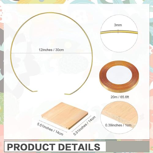 Contenuto della confezione: 2 anelli in metallo (diametro 30 cm), 1 base in legno (14 x 14 x 1 cm), 1 rotolo di nastro dorato (lungo 20 m), 4 tappetini in silicone antiscivolo. Questo set non include i fiori, è possibile utilizzare questi accessori per creare un anello decorativo in metallo.