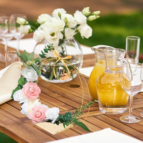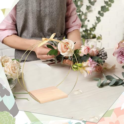 Facile da montare: Non sono necessari attrezzi, il montaggio è facile e veloce. Basta inserire le estremità dellanello metallico nei fori su entrambi i lati della base e legarlo con un nastro, per ottenere una bella decorazione floreale da tavolo.