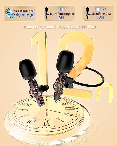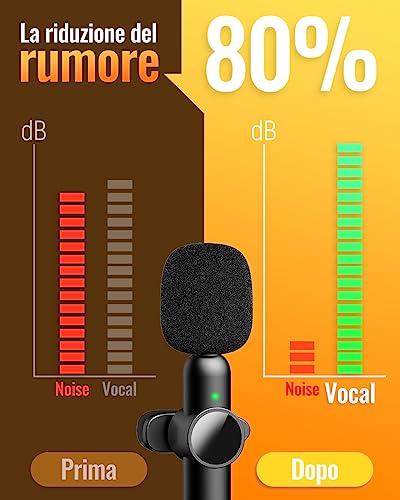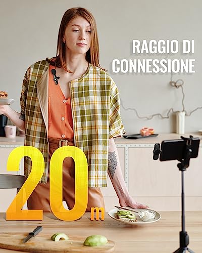【Tecnologia di trasmissione wireless 2.4Ghz】connessione stabile senza interferenze, raggio di trasmissione fino a 20 metri. Con la sua stabile tecnologia di trasmissione wireless, testa del microfono ad alta qualità e funzione di riduzione del rumore, questi microfoni sono adatti a una vasta gamma di applicazioni, tra cui video YouTube, registrazioni di viaggi, podcast, ecc.
