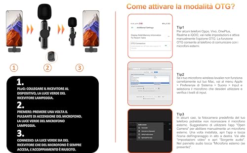 【Cosa otterrai】microfono wireless, cavo di ricarica Type-C, ricevitore e manuale dell'utente, garanzia di 12 mesi e amichevole servizio clienti (risposta via email entro 24 ore, risoluzione dei problemi).