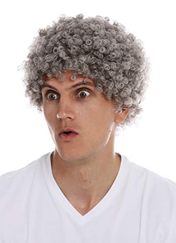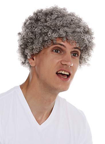 WIG ME UP - MMAM-9M-K686 Parrucca Carnevale Donna Uomo Corti Ricci Crespi Afro Testa crespa Grigio