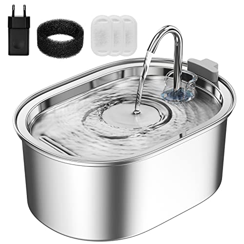 MMcRRx Fontanella Per Gatti Acciaio Inox, 3,2l Fontana Acqua per Gatti e Cani Silenziosa con 3 Filtri e Adattatore