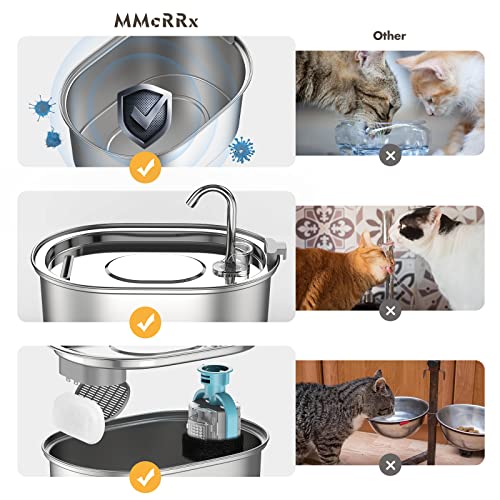 【Fontanella gatti in acciaio inox】MMcRRx fontanella acqua gatto è realizzata in acciaio inox 304 per alimenti, lavabile in lavastoviglie e sterilizzabile a caldo. Riduce la crescita batterica e i residui e previene l'annerimento del mento del gatto.