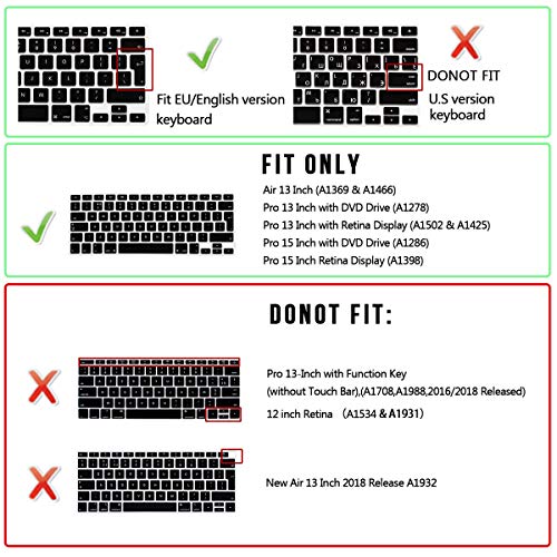 Progettato solo per MacBook Old Air 13 pollici A1369 e A1466, MacBook Pro 13 (A1278), MacBook Pro 15 (A1286), MacBook Pro 13 Retina (A1502/A1425), MacBook Pro 15 Retina (A1398), Magic Keyboard 1st Gen.layout UE.