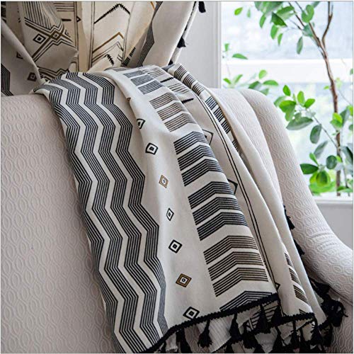 MMHJS Tende di Cotone e Lino Stampate Tende da Pavimento Nere con Nappe Tende da Asta Stile Bohémien