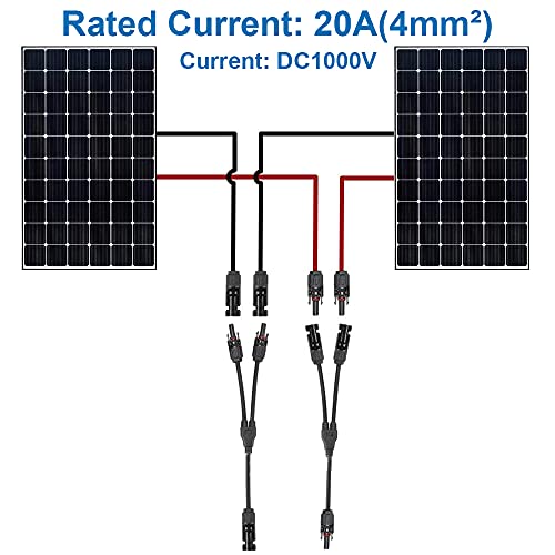 MMOBIEL 2 connettori per pannelli solari da 1 a 3 connettori - Cavo con adattatore per prolunghe - Plug & Play 30 cm Inc. 2x Chiave per connettori solari