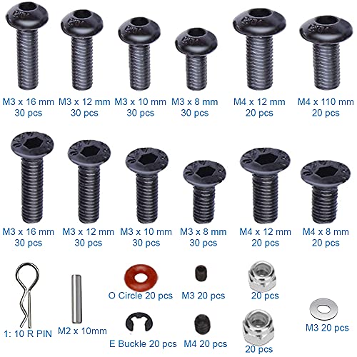 MMOBIEL Kit 500 Pezzi Viti universali per Oggetti radiocomandati Set assortimento per Automobili, Camion, cingolati radiocomandati in Scala 1/8, 1/10, 1/12, 1/16, M3, M4 Dadi Fibbie con Copertura