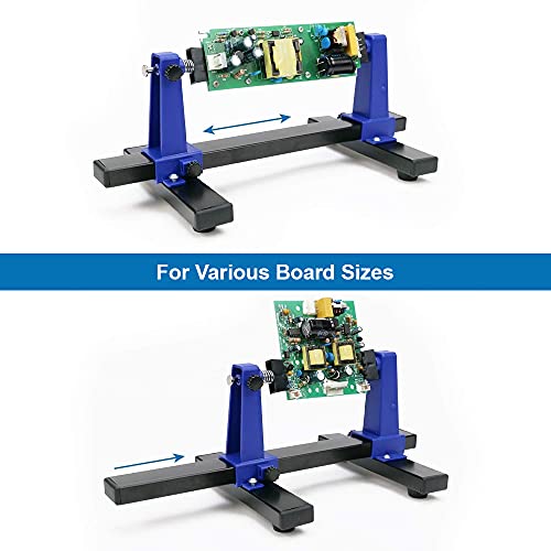 Materiale: la base di queste mani regolabili per PCB Board è realizzata in metallo solido con un rivestimento nero resistente ai graffi, per fornire una base pesante e stabile per una stabilità assoluta durante una saldatura precisa. 4 cuscinetti in gomma morbida danno al supporto la massima aderenza alla superficie. I lati sono realizzati in plastica leggera che scivola dolcemente sulla base in acciaio pesante quando si regola la larghezza.