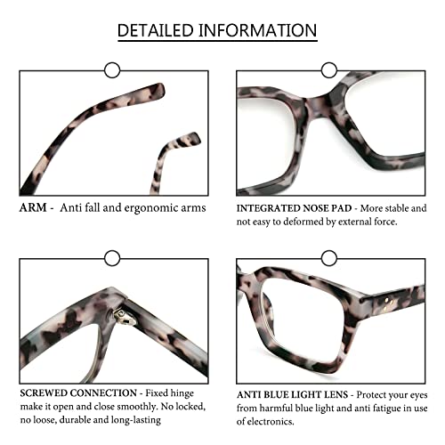 MMOWW Confezione da 3 Occhiali da Lettura Rettangolari - Oversized Square Frame Anti Luce Blu Occhiali donna uomo (Nero+tartaruga blu+tartaruga grigia, 3.0)