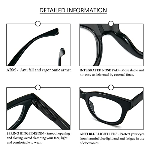 【 Telaio grande e durevole】 La lente trasparente e resistente ai graffi non ostacolerà la visione. Confortevole telaio grande con braccia rinforzate per la massima durata. Ti piacerà indossare questi lettori.