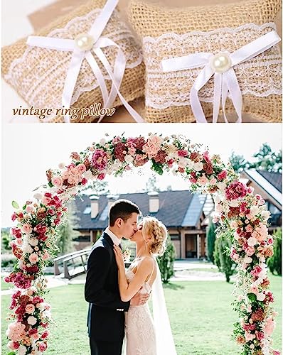 ECCELLENTE REALIZZATA: questo cuscino per fedi nuziali è realizzato in iuta morbida e confortevole, materiali selezionati di alta qualità, è splendidamente lavorato e accuratamente lavorato per evitare di graffiare i tuoi anelli e altri gioielli. La corda sul retro ha un buon effetto di fissaggio, in modo che il cuscinetto ad anello non possa cadere facilmente durante l'uso.