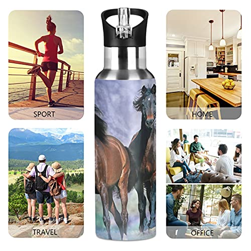 Mnsruu Arte Cool Animale Cavallo Borraccia Termica con Cannuccia Sportiva, Bottiglia Acqua in Acciaio Inox Isolato 600ML Senza BPA per Bevande Calde e Fredde per Bambini Scuola