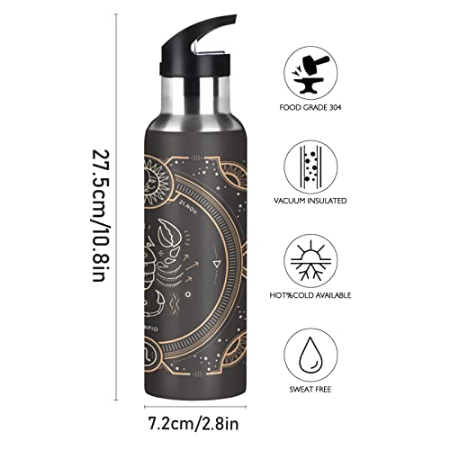 Mnsruu Arte Scorpione Zodic Costellazione Borraccia Termica con Cannuccia Sportiva, Bottiglia Acqua in Acciaio Inox Isolato 600ML Senza BPA per Bevande Calde e Fredde per Bambini Scuola