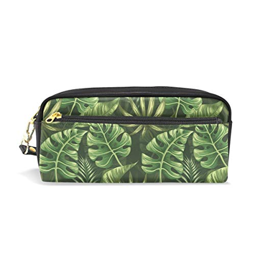 Mnsruu, astuccio tropicale con foglie di palma in pelle PU, con piccoli scomparti, organizer per penne e penne, per ragazzi e ragazze