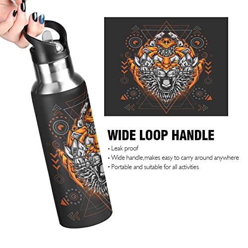 Mnsruu Leone Nero Giallo Moda Borraccia Termica con Cannuccia Sportiva, Bottiglia Acqua in Acciaio Inox Isolato 600ML Senza BPA per Bevande Calde e Fredde per Bambini Scuola