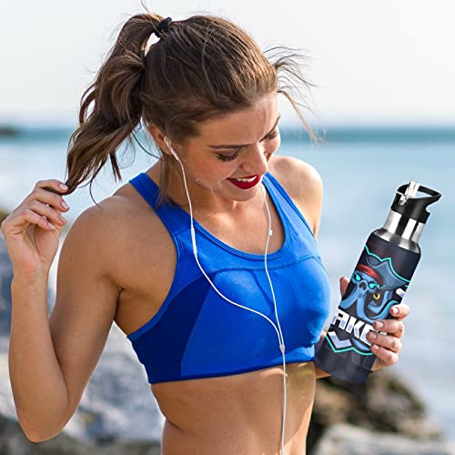 Mnsruu Simpatico Pirata di Polpo di Zucchero Borraccia Termica con Cannuccia Sportiva, Bottiglia Acqua in Acciaio Inox Isolato 600ML Senza BPA per Bevande Calde e Fredde per Bambini Scuola